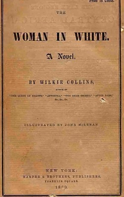 The Woman in White is an epistolary novel written by Wilkie Collins in 1859, serialized in 1859–1860, and first published in book form in 1860. It is considered to be among the first mystery novels and is widely regarded as one of the first (and finest) in the genre of 'sensation novels'.As was customary at that time, The Woman in White was first published as a magazine serial. The first episode appeared on 29 November 1859, following Charles Dickens's own A Tale of Two Cities in Dickens's magazine All the Year Round in England, and Harper's Magazine in America. It caused an immediate sensation. Julian Symons (in his 1974 introduction to the Penguin edition) reports that "queues formed outside the offices to buy the next instalment. Bonnets, perfumes, waltzes and quadrilles were called by the book's title. Gladstone cancelled a theatre engagement to go on reading it. And Prince Albert sent a copy to Baron Stockmar.